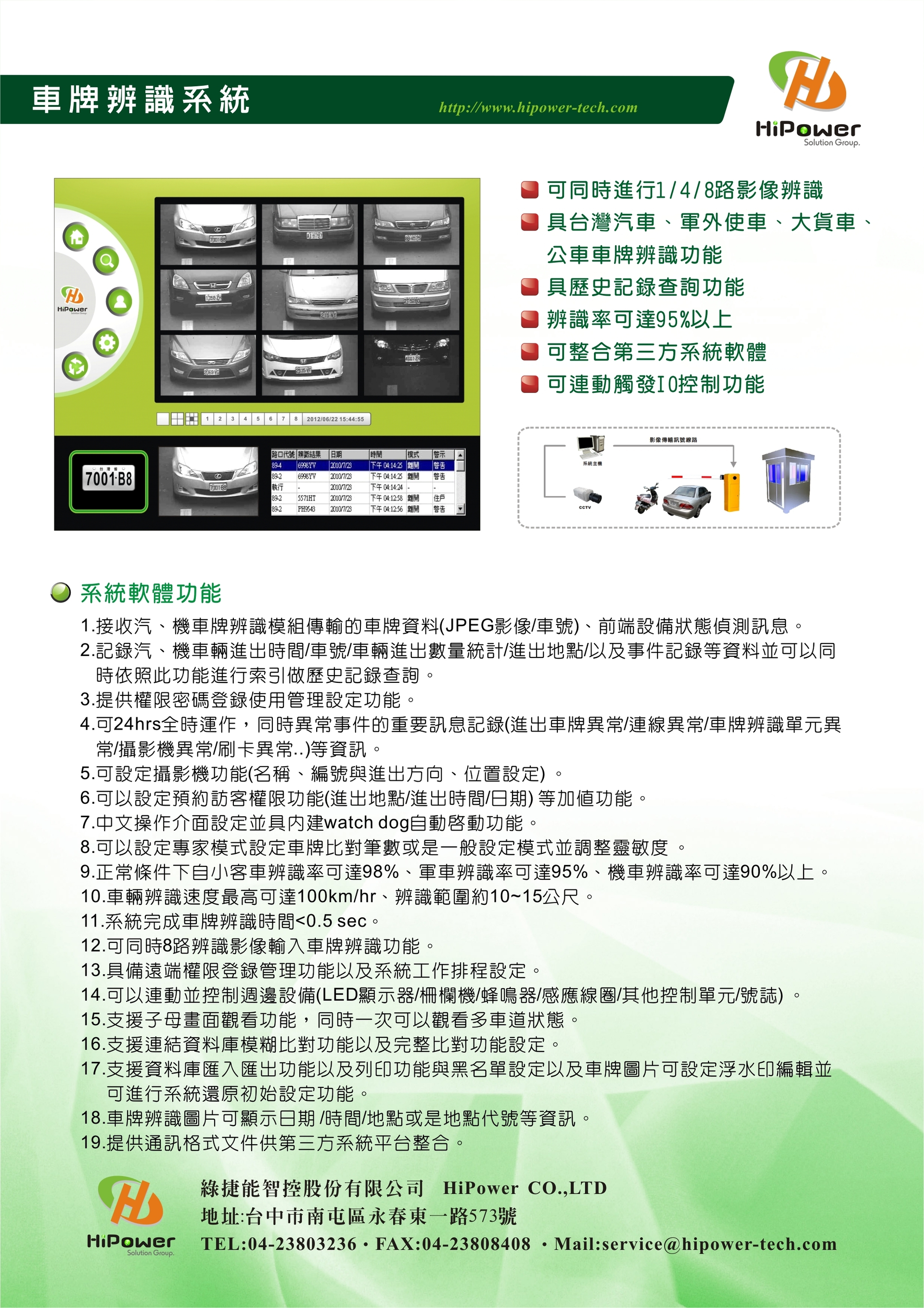 l 汽機車車牌辨識率日間可達95%以上,夜間可達95%以上。